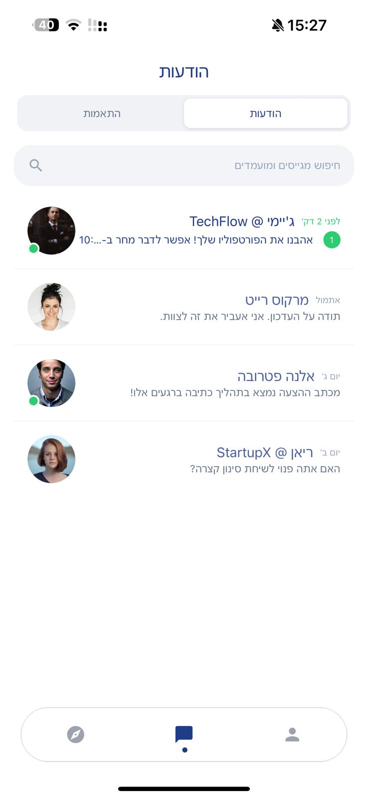 התכתבות ישירה לאחר התאמה. בלי מתווכים, בלי המתנה, תקשורת ישירה ויעילה.